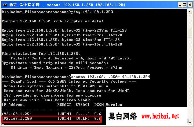 然后就在命令提示符下输入 scanms IP1-IP2,记得要空格哦!如图