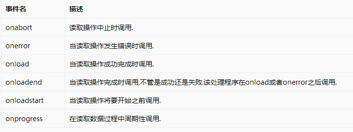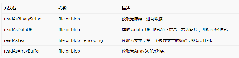使用FileReader对象,web应用程序可以异步的读取存储在用户计算机上的文件(或者原始数据缓冲)内容,可以使用File对象或者Blob对象来指定所要处理的文件或数据.
