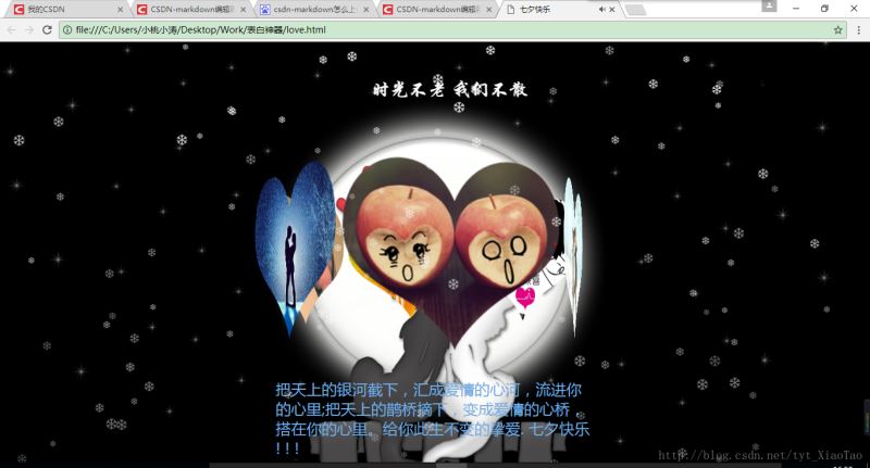 以上所述是小编给大家介绍的html5+CSS3+JS实现七夕言情功能代码,希望对大家有所帮助,如果大家有任何疑问请给我留言,小编会及时回复大家的。在此也非常感谢大家对脚本之家网站的支持!