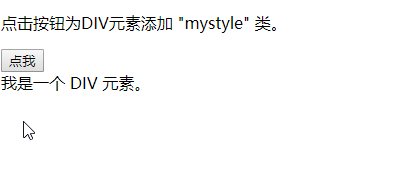 <p>点击按钮为DIV元素添加 "mystyle" 类。</p>
