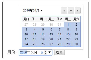 value {string} :设置或获取控件的值,值的格式要为:"yyyy-MM"。
