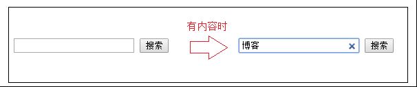 说明:在Chrome中搜索框没内容时就像普通的文本输入框,当有内容时右边有个'x'符号,用以清除文本内容。