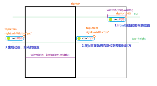 $(value).css({"right":-width,"top":topRandom}); //将弹幕移动到屏幕外面,正好超出的位置