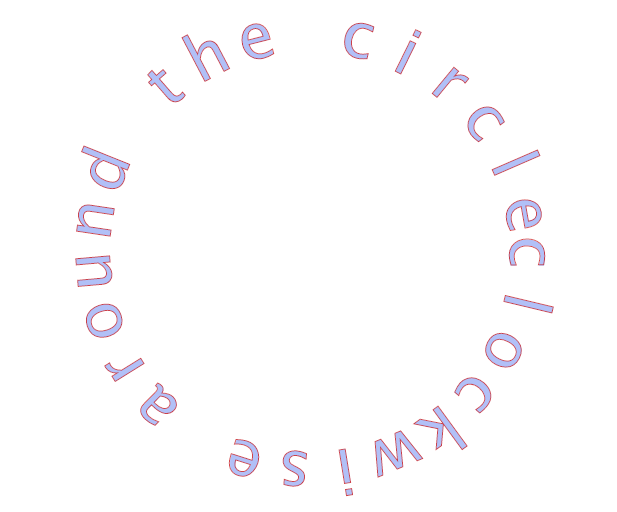 drawCircularText("clockwise around the circle",Math.PI*2,Math.PI/8) //第三个参数表示文字首位是否相接 差了多少弧度