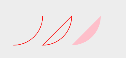 ctx.beginPath(); ctx.arc(200, 100, 100, 0, Math.PI / 2, false); ctx.closePath(); ctx.stroke(); ctx.fill();