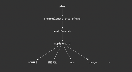 为了降低网络开销,我们换个思路,我们在最开始的页面基础上,记录下一步步操作,在我们需要"播放"的时候,按照顺序应用这些操作,这样我们就能看到页面的变化了。这个思路把鼠标操作和DOM变化分开: