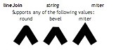 lineJoin,意思即线的交汇处,有3个属性:miter(默认,尖角),bevel(斜角),round(圆角),如图6: