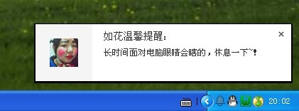 var popup = window.webkitNotifications.createNotification("avator.jpg","如花温馨提醒:","长时间面对电脑眼睛会瞎的,休息一下~!");