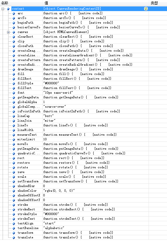 在开发者控制台里可以看到这个drawing2d的属性及方法: