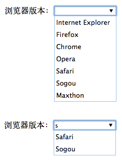 以前需要用JS写一个自动完成组件(Suggest),很费劲。HTML5时代则不用了,直接使用datalist标签,直接减少了工作量。如下