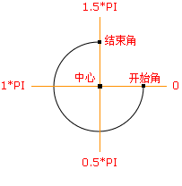 context.arc(100,300,40,0*Math.PI,1*Math.PI,true); //PI的弧度是180°