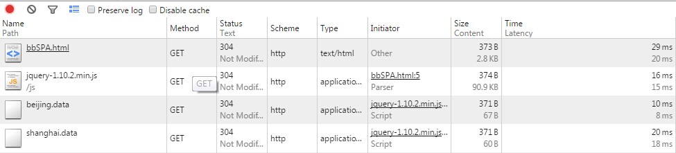 "http://localhost:8888/bbSPA.html#shanghai",”history.replaceState“完成了初始化url切换工作,并且初始做了加载