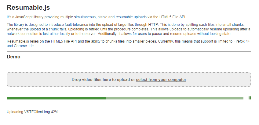 resumable是一个纯html5上传类库。
