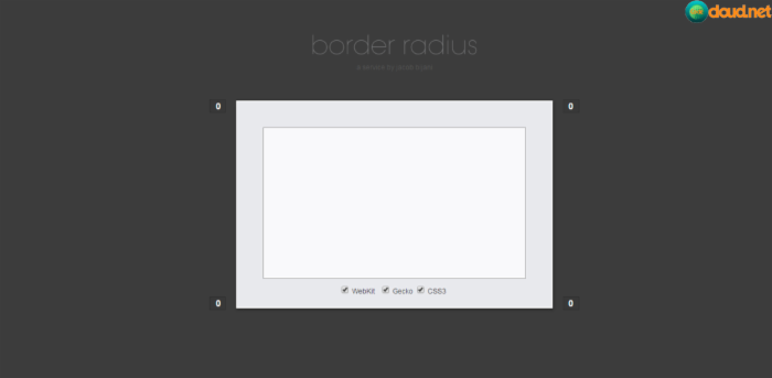 这是个非常好的、轻量级的工具,主要拿来设置边角的圆角边框。一旦完成了边角设置,就可以在浏览器上检查你想要包含的前缀,这些都是已经完成了的。是个界面很简洁友好的生成器。