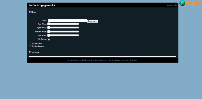 假如你要画一个箭头或是一个三角形时,想让生成器把它平铺到你的网站边框或者是元素边框。这是最好用的图片边框生成器,当它要复制图片去找到最合适的边框样式时候。也就是说,届时,你就可以操作设置它的大小、偏移量,可以平铺这张图片等等。开发者经常喜欢拿它来设置背景。