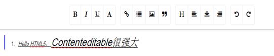 Contenteditable可用于实现网页编辑器,当前很多网页编辑器都用这个属性实现,如下图: