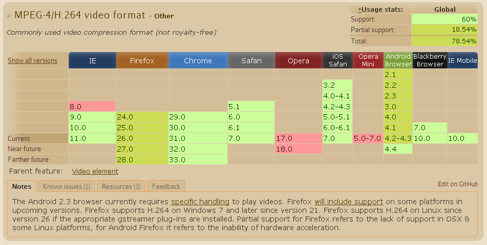 而html5的video标签只支持mp4、webm、ogg三种格式.目前所有主流浏览器最新版本都支持html5(除了Opera)