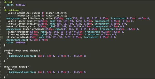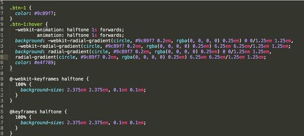 在第一种按钮背景动画中,按钮的背景使用2个渐变图层来制作。当鼠标滑过按钮时执行halftone帧动画,该动画修改按钮的background-size属性。它缩小了背景图片的尺寸,使所有的圆点连成一片。