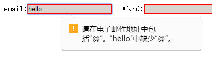 当点击提交按钮时,如果你输入的格式不符合email,则会导致无法提交,浏览器会提示你错误信息。