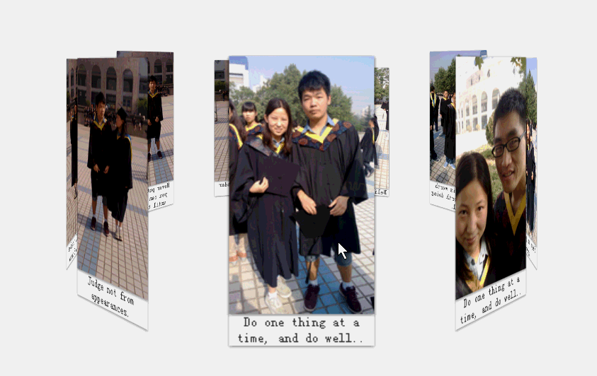 1、首先所有的图片的容器position:absolute,叠加在一起,然后一次设置rotateY分别为40*i ,i= 0 , 1, 2...9 ;所有图片会相交成一个类似花的形状