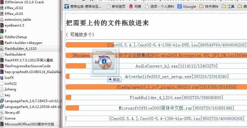主要功能是用户可以直接把文件夹的文件直接拖放到网页中,并进行上传,在上传的过程中显示上传进度信息.