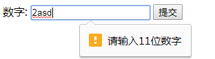 数字: <input type="text" pattern="^\d{11}$" oninvalid="setCustomValidity('请输入11位数字')">