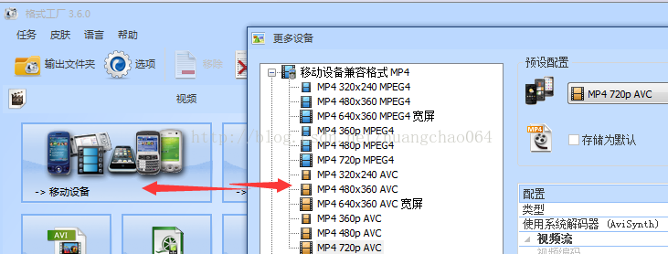 4、在格式化工厂里面找到AVC编码的格式,如下图