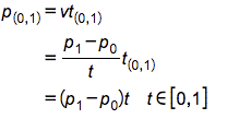此时t为时间,v为速度。我们可以看做从p0到p1的距离等于固定速度乘以固定时间