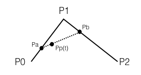 其中Pp(t)的经过路径就是我们所求的二阶贝塞尔曲线,那么其实我们也可以将其从一阶进行演变: