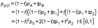 pt是p0p1上的任意一点,p0pt / ptp1 = t。从而我们可以引出下面的推导