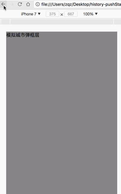 这种交互在H5页面中比比皆是,点击城市->弹出城市选择浮层->按返回按钮关闭浮层。