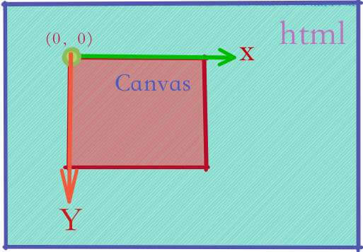 再来看看canvas 2d绘制中的坐标系统,当前canvas元素左上角为坐标原点(0,0),水平向右为X轴正方向,垂直向下为Y轴正方向,如下图。可以通过平移(translate),旋转(rotate),缩放(scale)来操作坐标系,实现一些动画,这部分将在动画知识部分详细讲解。