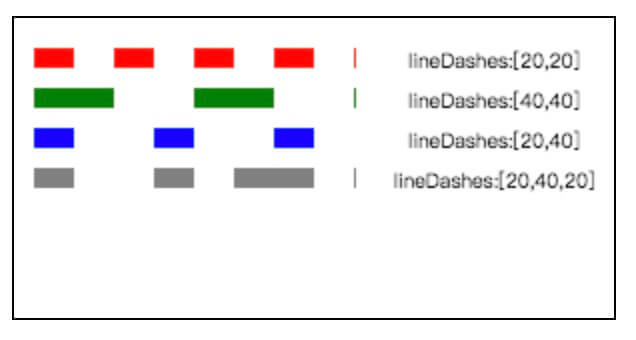 let lineDashes = [[20, 20], [40, 40], [20, 40], [20, 40, 20]];