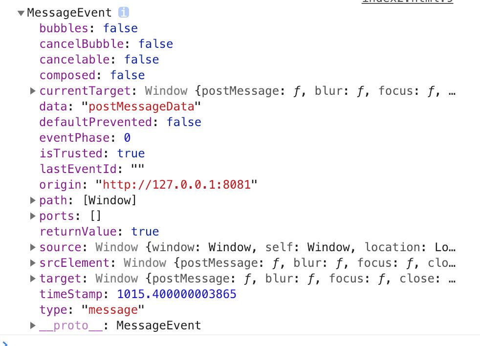 windowOpen.postMessage('postMessageData','http://127.0.0.1:8082/index2.html')