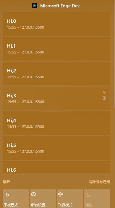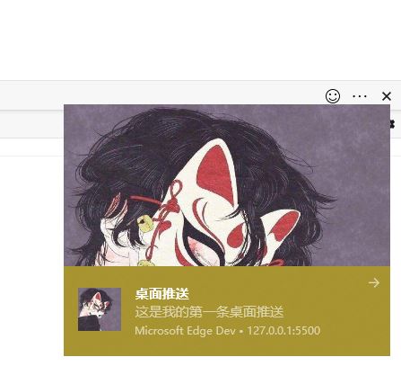 PS:消息通知只有通过 Web服务访问 该页面时才会生效,如果直接双击打开本地文件,是没有任何效果的。也就是说你的文件需要使用服务器的形式打开,而不是直接使用浏览器打开本地文件。