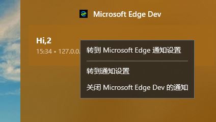 当我们打开界面的时候,就会弹出授权申请,如果我们点击 允许 ,然后点击按钮,就可以发送一条通知到桌面,我们就可以在桌面右下角看到这条通知。