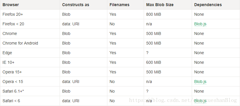 但是不同浏览器对 Blob (类文件对象)有不同的大小限制,这种借助Blob转换成二进制 实现下载功能的方式并不能导出数据量过多的数据到excel文件(即不能下载太大的文件),且有兼容性问题。
