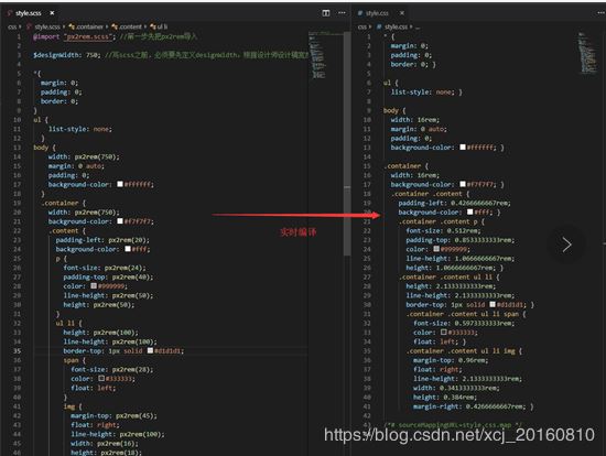 同时打开style.css,可以看到,style.scss文件上的内容会实时编译到style.css'
