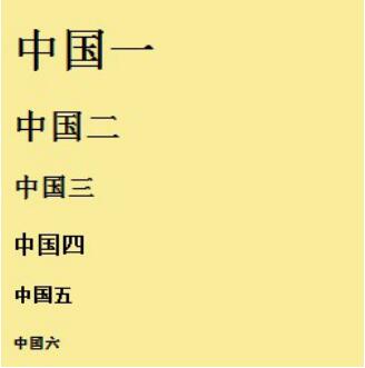 HTML定义<h1></h1>到<h6></h6>六个<h>标签,分别用来不同大小字体的标题(Heading)。字体由大到小,<h1>最大,<h6>则最小。