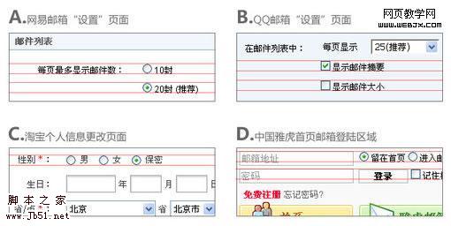 最近的项目涉及到很多表单的制作,特别是复选框(checkbox)和单选框(radio)。但是在前端开发过程中发现,单(复)选框和它们后面的提示文字在不进行任何设置的情况下,是无法对齐的,而且在Firefox和IE中相差甚大。即使设置了vertical-align:middle,也依然不能完美对齐。如下图所示: