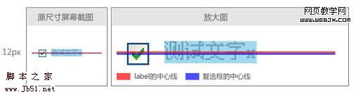 如果按照之前的设想,红蓝两线应该是重合的。但现在的情况是,它们相差了1px。并且这1px是没有规律的,随着字号的放大,并不恒定,貌似轻易也无法提炼出对应关系来。于是想到,再试一下将label也加上vertical-align:middle。结果如图: