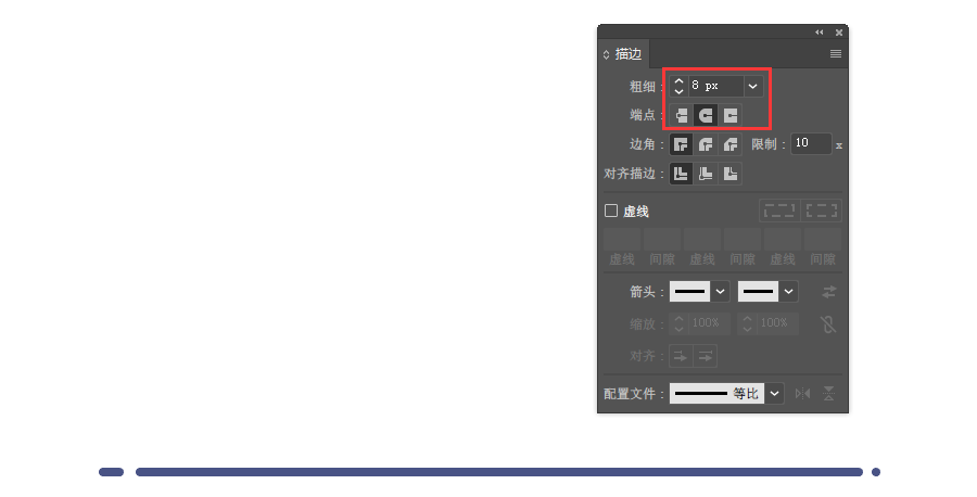 步骤2:用直线工具,按住shift,画出几条直线,设置描边8px,描边色值为#495385,把它们选中,右键-编组,如下图。