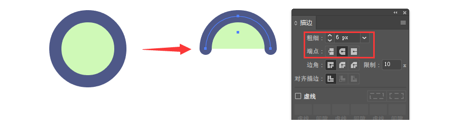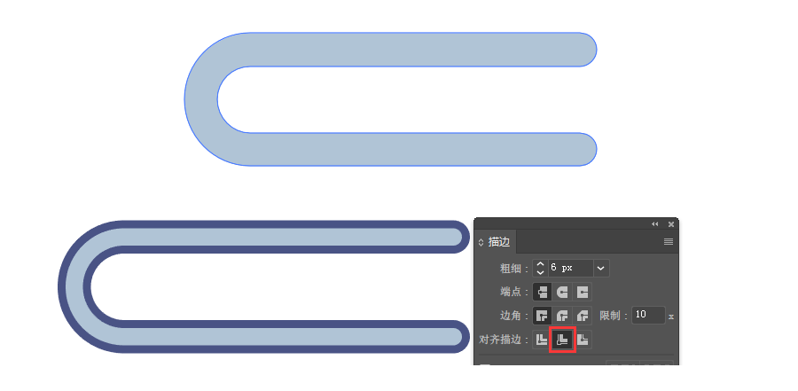 a:利用小白工具拉圆角,再设置内描边为6px,并且轮廓化描边,留着有用,如下图。