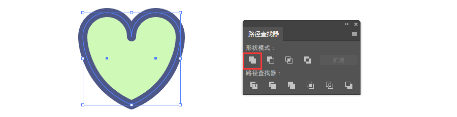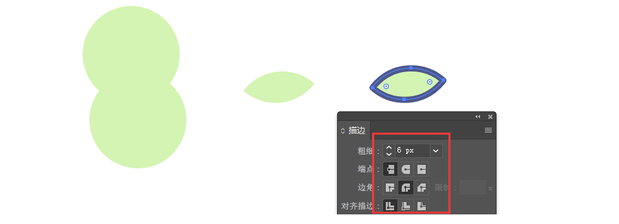 步骤5:绘制小叶片,画出两个94*94px的圆,填充颜色#d4f4b3,进行联集,然后设置描边6px,描边色值和前面一样,(ai里的吸笔工具小技巧:按住shift可以单独吸取需要的颜色,并不会吸取所有的样式),如下所示: