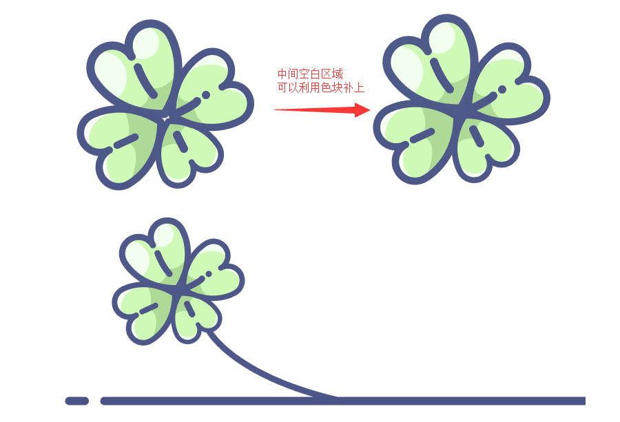 步骤4:同理,多复制三片叶片,再进行细节修改,旋转缩放得出以下结果。并用钢笔工具绘制根茎。