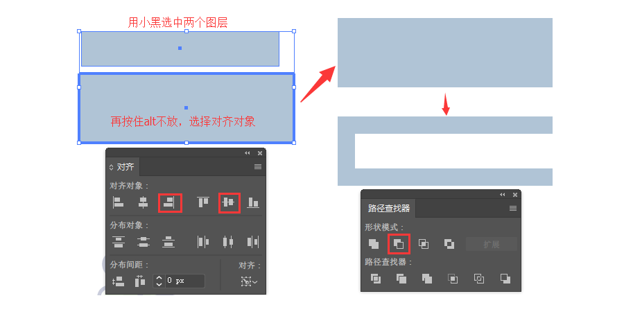 步骤1:先绘制书本,画一个310*100px的矩形,再绘制一个285*50的矩形,填充颜色#b0c4d6,然后再减去底层,如下图。