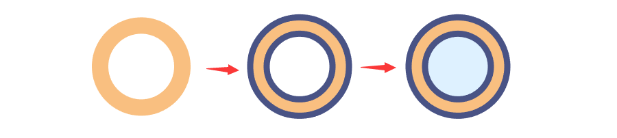 步骤2:绘制眼镜部分,画一个96*96px的圆,填充颜色#f9bf80,再画一个64*64px的圆,进行减去顶层,描边大小为6px,然后轮廓化描边。再绘制64*64px的圆,填充颜色#bde3ff,并降低不透明度为50%,调整图层顺序,如图。