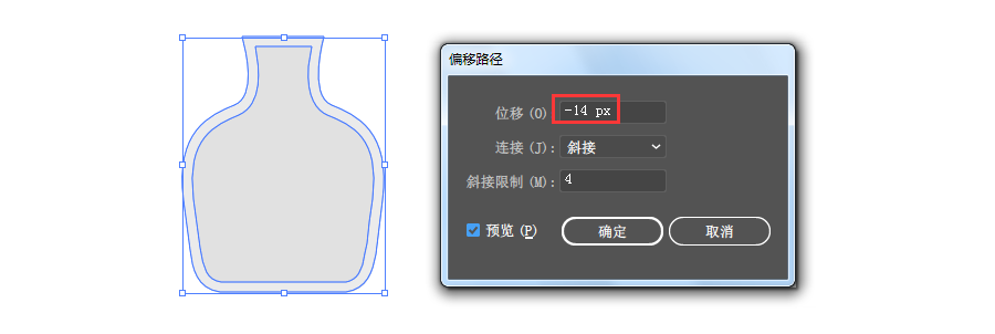 步骤2:绘制高光部分,复制一层瓶子的填充图层,在对象-路径里找到偏移路径,如图。