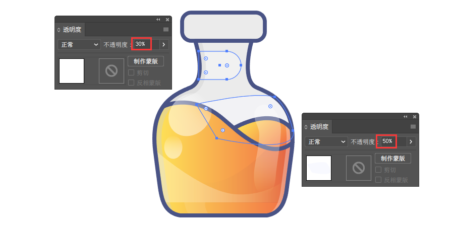 g:绘制瓶口高光,利用到剪贴蒙版和偏移路径,方法已经告诉你们了,那么直接看图,填充颜色也是纯白色。